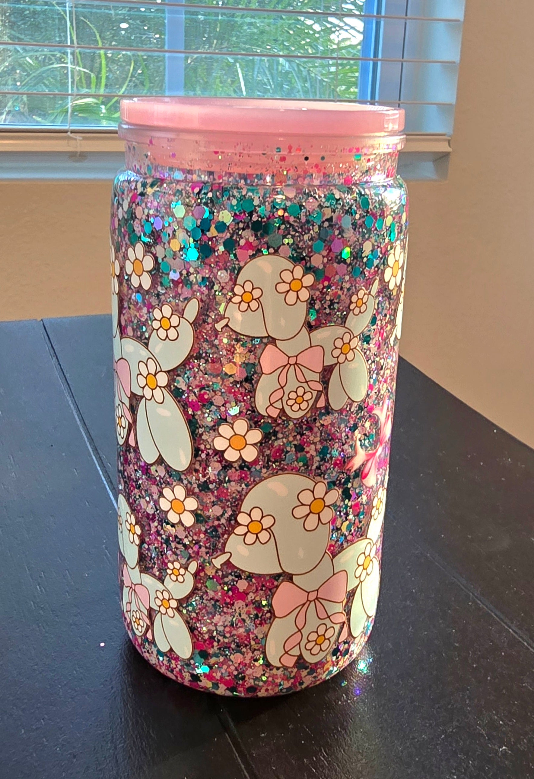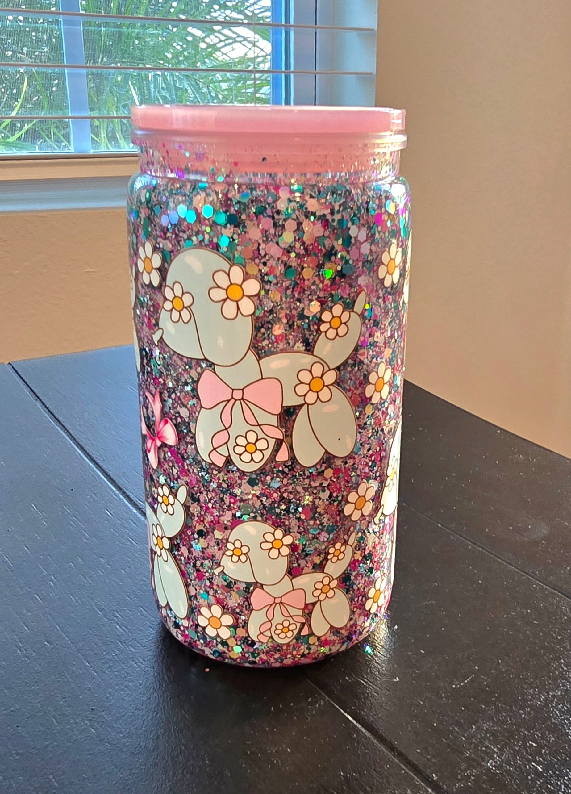 Premade 16oz Acrylic cute Balloon Dogs. Pink and Teal. Pink lid included.