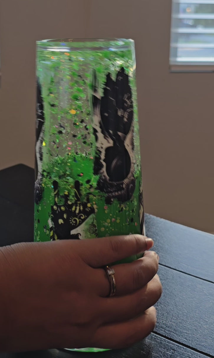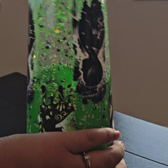 Premade 24oz Acrylic Lava effect tumbler. Neon green, Snow White, Wednesday. Spooky.